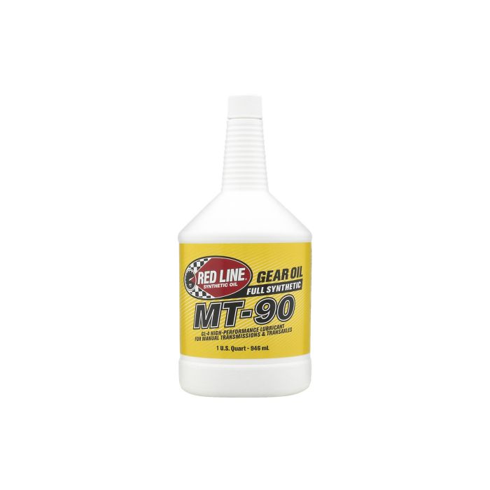 RED LINE MT-90 HIGH-PERFORMANCE GEAR OIL is a full-synthetic ester-based lubricant designed for use in manual transmissions and front-wheel-drive transaxles. This shear-stable formula resists breakdown for extended periods and offers more consistent viscosity in warm and cold temperatures for less gear noise and improved shifting. This fluid is less slippery for improved synchronizer coefficient of friction and offers stronger film strength for better wear protection.