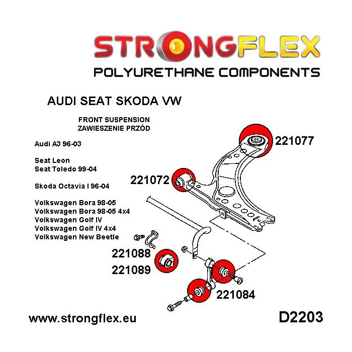 - D2203 Front suspension Polyurethane Audi A3 Seat Leon Toledo Skoda Octavia VW Bora Golf New Beetle