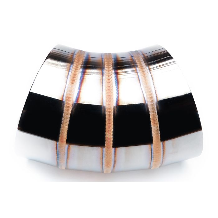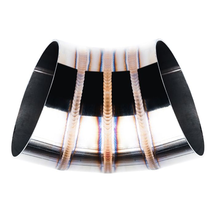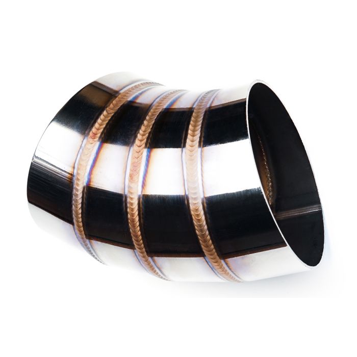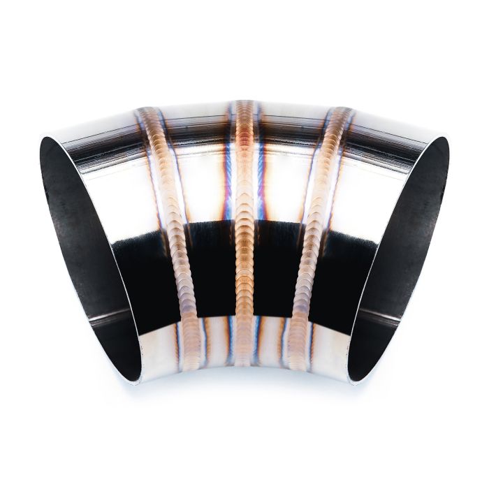 Stainless steel elbow from the "welding porn" series with a diameter of 57mm and 45 degrees. Artistically, hand-welded in an argon chamberare very satysfying with their appearance - beautiful, colorful welds, as well as extremely precise workmanship. Stainless "slices" cut on a CNC machine at an angle of 11.25 are perfectly aligned with each other - without burrs, faults, etc. Thanks to that our elbows create ideal passage. The high-gloss finish combined with the colorful welds guarantee an amazing visual effect. The elbows are made of 304 stainless steel - they can be used both in the exhaust system and in the intake system.