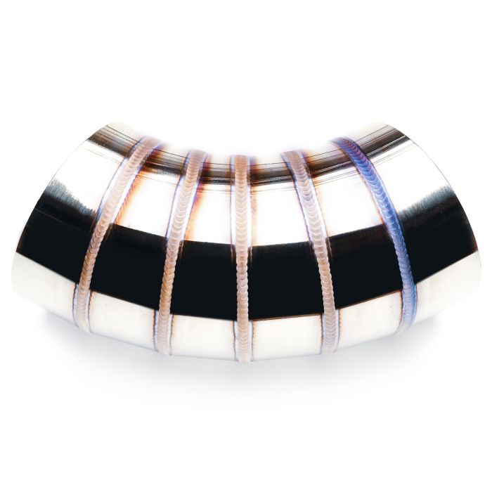 Stainless steel elbow from the "welding porn" series with a diameter of 102mm and 67 degrees. Artistically, hand-welded in an argon chamberare very satysfying with their appearance - beautiful, colorful welds, as well as extremely precise workmanship. Stainless "slices" cut on a CNC machine at an angle of 11.25 are perfectly aligned with each other - without burrs, faults, etc. Thanks to that our elbows create ideal passage. The high-gloss finish combined with the colorful welds guarantee an amazing visual effect. The elbows are made of 304 stainless steel - they can be used both in the exhaust system and in the intake system.