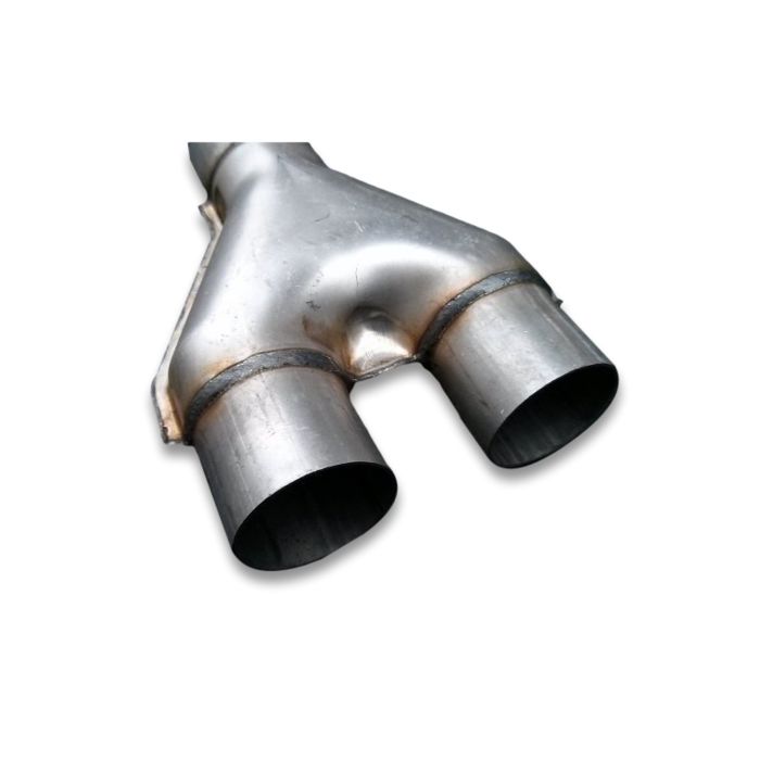 Y-Pipe, inlets/outlets diameter 76mm, made of aluminum coated steel (SS409) – very low weight. It is an essential element in the exhaust system for connecting two pipes in one or at the fork of the exhaust from one to two pipes.