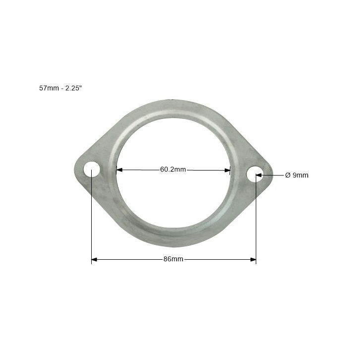 Exhaust system of an internal diameter of 57mm (2,25") 2 screws flange seal. Made of high quality 3-layer heat-resistant material, additionally reinforced by a metal ring. It guarantees the exhaust system leak tightness, even in heavily loaded, tuned cars. Seal thickness is 2mm!