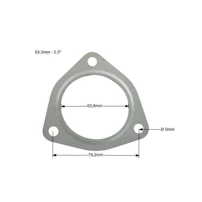 Exhaust system of an internal diameter of 63mm (2,5") 3 screws flange seal. Made of high quality 3-layer heat-resistant material, additionally reinforced by a metal ring. It guarantees the exhaust system leak tightness, even in heavily loaded, tuned cars. Seal thickness is 2mm!