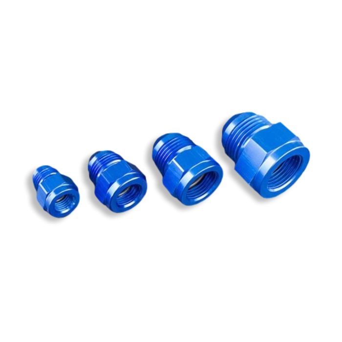 Adapter AN8 male to AN6 female JIC reducer hose fitting Blue