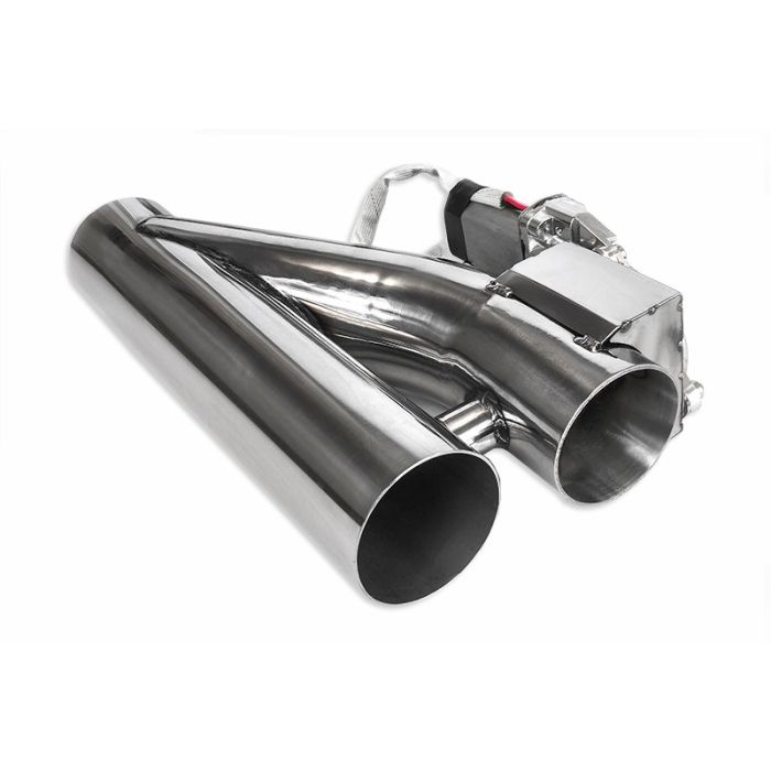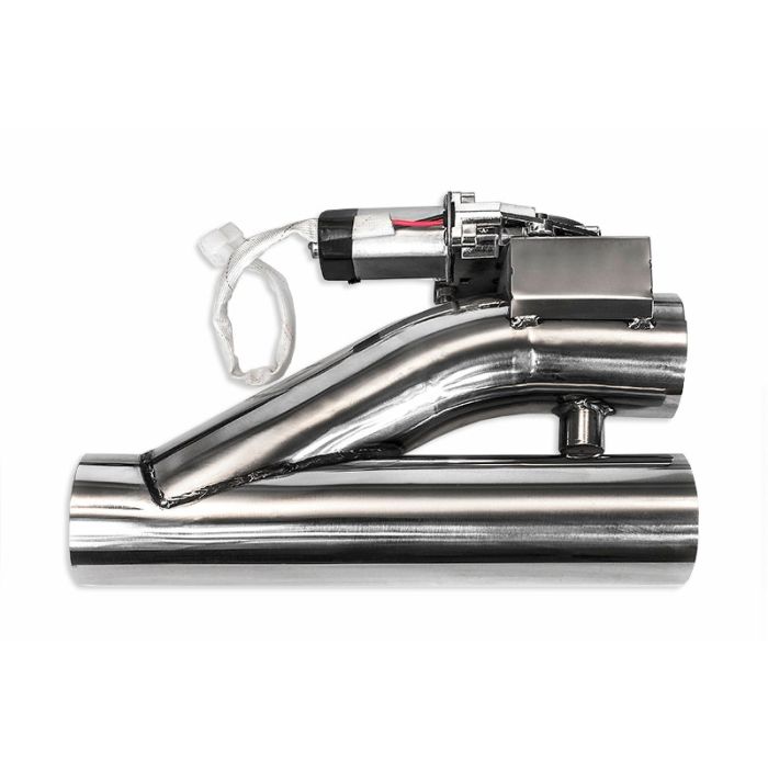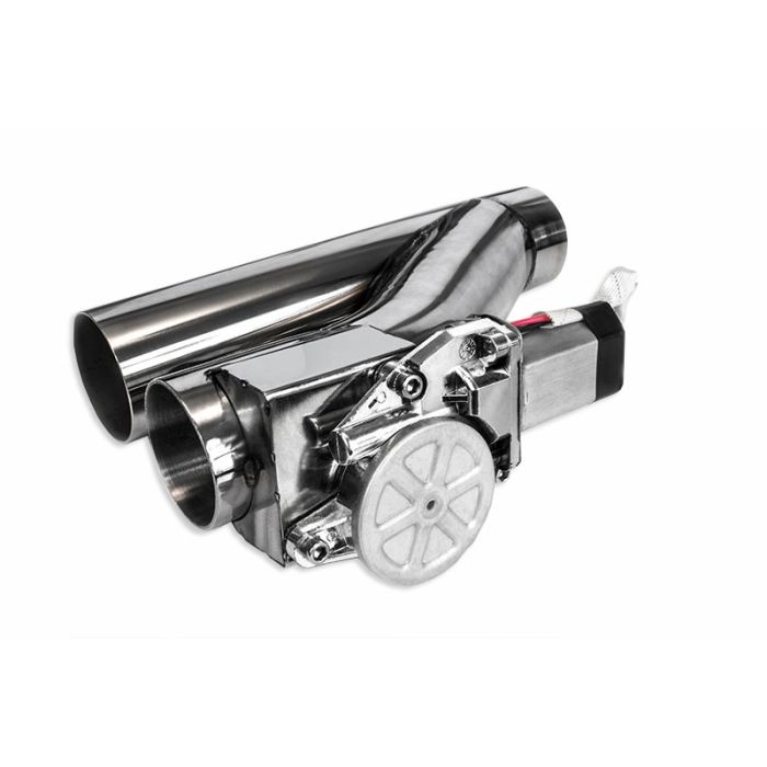 Electronic exhaust throttle made of stainless steel, allows (with the switch in the cab) to direct the exhaust stream through only one tailpipe. Especially recommended for street cars, because in one moment you can "turn off" a exhaust through-service, leaving only the second, e.g. based on chamber silencers, which will satisfy even the most demanding law enforcement officers :) Exhaust diameter: 51mm