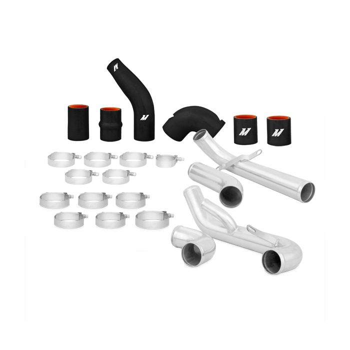 Improve airflow and turbo spool with Mishimoto mandrel bent aluminum intercooler pipes for the Mitsubishi Lancer Evolution 7/8/9. These pipe kits are designed with high-horsepower vehicles in mind and feature bead-rolled pipe ends for prevention of leaks and coupler disconnection. This Mishimoto Evo Intercooler Pipe Kit features silicone couplers that provide increased heat and pressure tolerance compared to the stock rubber counterparts. Whether you have a daily driven Evolution or a stripped and caged time attack car, airflow efficiency is key to optimizing your charge air system. These Mishimoto Evo intercooler pipes are available for purchase separately or as a kit. As with all our products, this kit is guaranteed by the Mishimoto Lifetime WarrantyDirect fit for the Mitsubishi Lancer Evolution 7/8/9UPPER PIPES: I.D.- 2.375", O.D.- 2.50" LOWER PIPE: I.D.- 2.375", O.D.- 2.50"Lightweight, mandrel bent, polished aluminum pipesImproves turbocharger spool and provides support for high-horsepower vehiclesMishimoto Lifetime Warranty