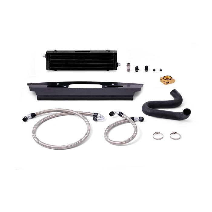 Nobody likes being sidelined at the track due to high engine oil temperatures. Mishimoto is here to help with a new line of efficient Mustang GT parts. Forced induction setups and some track miles can significantly overheat your oil and wear out your engine, so our engineers have developed an oil cooling solution for your Mustang GT!The Mishimoto engineers designed the heat exchanger for this project from scratch to create the largest oil cooler that we offer, and mounted it in the front of the vehicle where it receives the most airflow. Application-specific braided stainless steel lines transfer the oil from the cooler to the engine and feature -10AN fittings for an easy installation.This 2015 Mustang GT oil cooler kit is available with either a Sleek Silver or Stealth Black cooler and the Mishimoto Thermostatic Oil Sandwich Plate. As with all our 2015 Mustang parts, the Mishimoto Mustang GT Oil Cooler Kit includes the Mishimoto Lifetime Warranty.