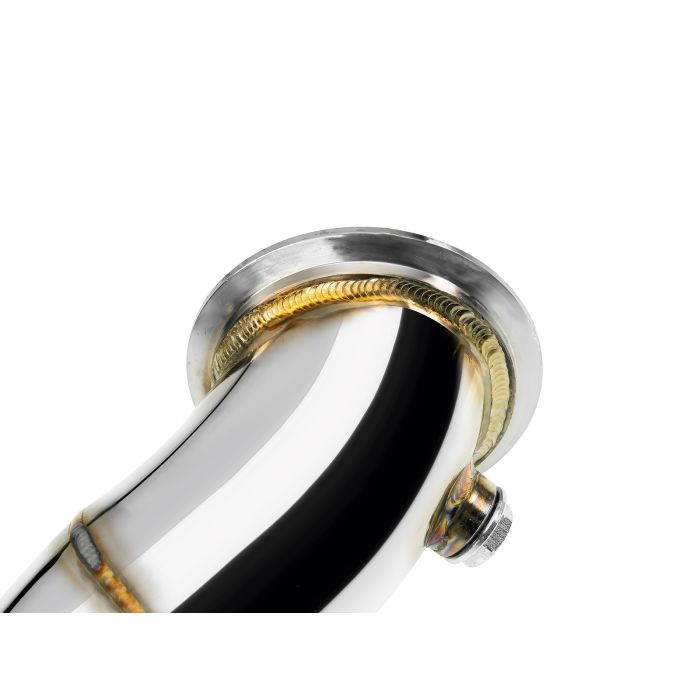 Downpipe is an essential element of tuning every turbocharged car. After its installation, the exhaust system is unclogged, which results in a noticeable improvement in the "bottom" of the engine, i.e. the so-called turbo hole effect disappears and the power and torque are increased. Fmic.Pro Racing Downpipe is the new quality and durability of exhaust system components. Our downpipes are made from high grade stainless steel with 1,5mm thick wall. Each component is carefully CNC made, which results in the repeatability of the finished element. Flexible connectors used in DP production have internal reinforcement, which significantly strengthens the whole construction, thanks to which it is impossible for the whole construction to be suctioned inside.