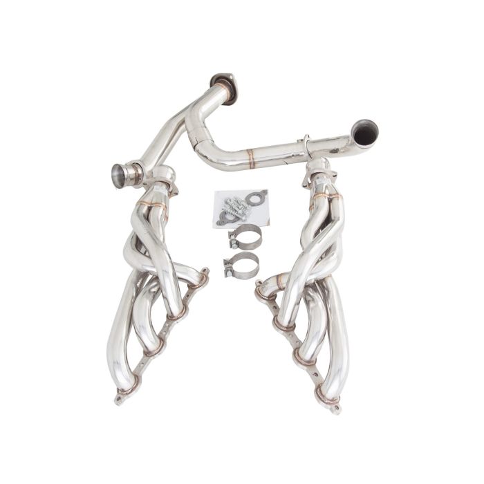 Supplied as a pair of headers and link pipe to help your V8 breathe much more easily, the enlarged 1”7/8 stainless steel headers flow into 3” outlets and enable increased power and torque output versus the OE setup.