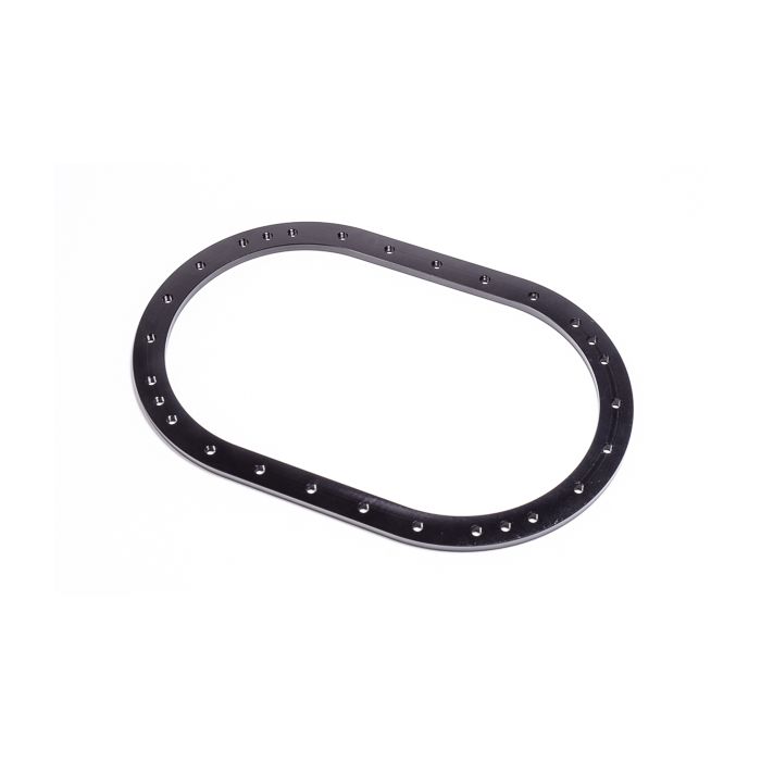 This nut ring is manufactured from 6061 aluminum and is anodized to permit all fuel types and to prevent corrosion. All threaded holes are tapped for 1/4"-28 using the industry standard 6x10 pattern. It was designed to bolt into Radium RA-series fuel cells but can work with others. Gasket not included.