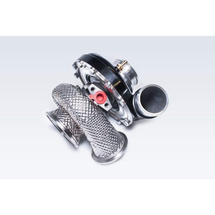 High performance turbocharger wtih 8cm2, 0.61AR single scroll turbine housing designed for heavy loads and high temperature. Two compressor side air outlet choices - 90° and straight for easier connection. Dual ceramic ball bearing and machined from solid aluminium compressor wheel makes it durable and efficient solution for motorsport use.