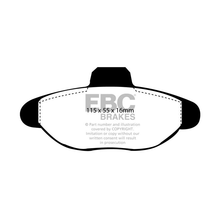 EBC Ultimax2 replacement brake pads for everyday road cars with a high coefficient of friction. Aramid fibre based compound with no steel fibres, with minimised dusting, easy to remove with water. An additional advantage is reduced brake disc wear and minimised risk of uneven wear.