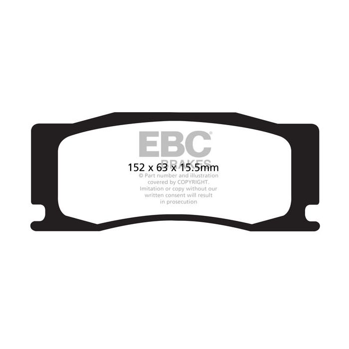 EBC YellowStuff brake pads new improved high friction aramid fibre compound, require no pre-heat and as the temperature rises their braking performance increases. These are the most popular pads in the EBC range for road use and occasional use on track and special stages on powerful tuned cars. Long life, minimised dusting, resistance to continuous aggressive braking are the main advantages of EBC YellowStuff.