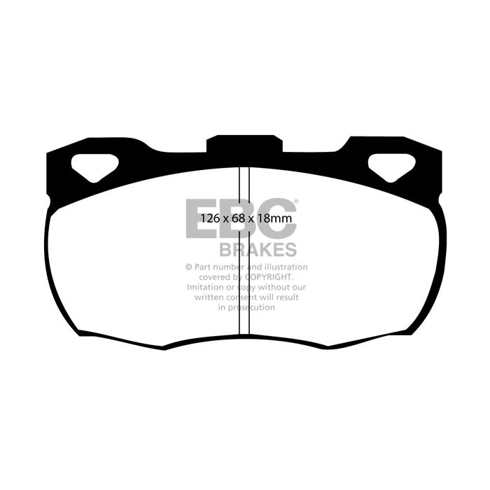 EBC Ultimax2 replacement brake pads for everyday road cars with a high coefficient of friction. Aramid fibre based compound with no steel fibres, with minimised dusting, easy to remove with water. An additional advantage is reduced brake disc wear and minimised risk of uneven wear.