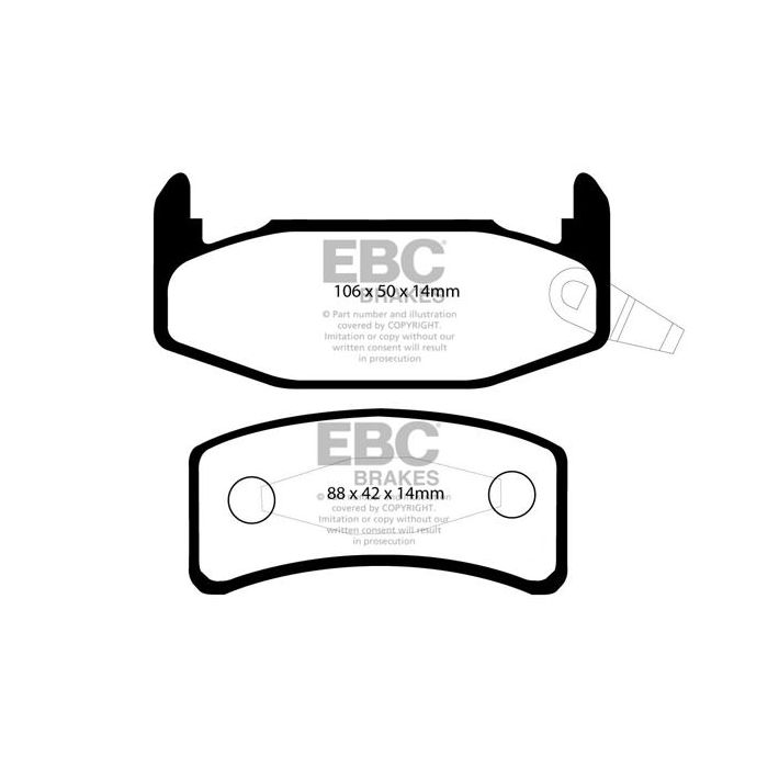 EBC YellowStuff brake pads new improved high friction aramid fibre compound, require no pre-heat and as the temperature rises their braking performance increases. These are the most popular pads in the EBC range for road use and occasional use on track and special stages on powerful tuned cars. Long life, minimised dusting, resistance to continuous aggressive braking are the main advantages of EBC YellowStuff.