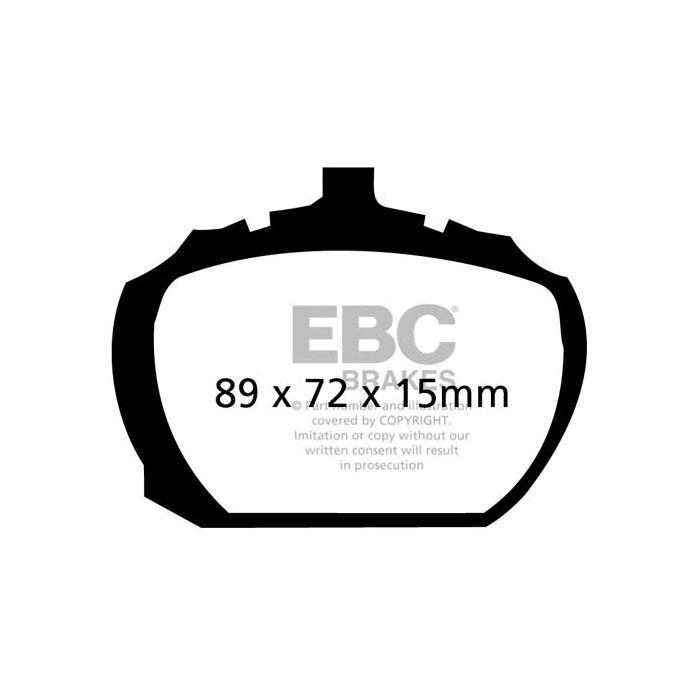 EBC Ultimax2 replacement brake pads for everyday road cars with a high coefficient of friction. Aramid fibre based compound with no steel fibres, with minimised dusting, easy to remove with water. An additional advantage is reduced brake disc wear and minimised risk of uneven wear.
