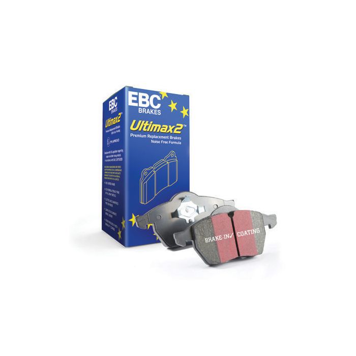 EBC Ultimax2 replacement brake pads for everyday road cars with a high coefficient of friction. Aramid fibre based compound with no steel fibres, with minimised dusting, easy to remove with water. An additional advantage is reduced brake disc wear and minimised risk of uneven wear.