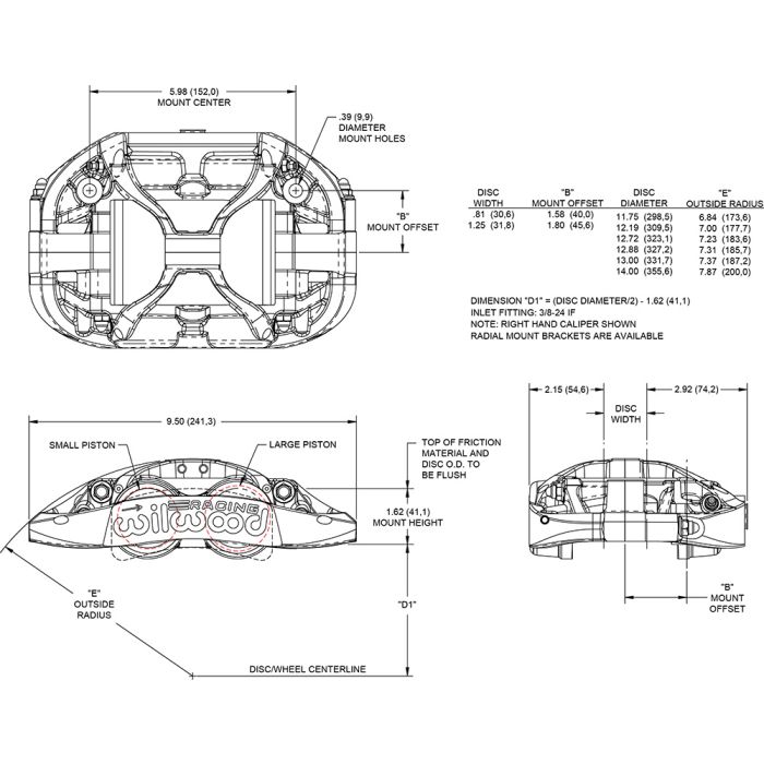The innovative complex shape of the body removes unnecessary bulk, improves brake and fluid cooling, and actually decreases deflection. Four Thermlock® thermal barrier pistons reduce heat transfer to the brake fluid, and the staggered bore size front calipers provide more even engagement with improved pad wear. Hard-anodized inside the piston bores and on the surface with Type III aluminum-oxide ceramic finish for durability and equipped with single-point bleed technology and low-profile bleed screws for easy serviceability. No-bind pad retaining pins (spare included) hold your choice of multiple 0.80” thick Wilwood race compound brake pads for extended service life.