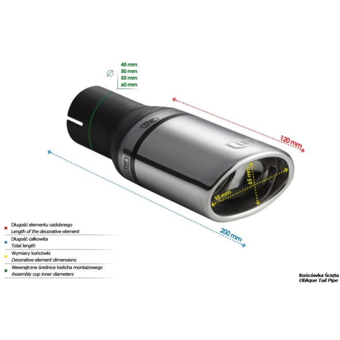 Universal Exhaust Tail Pipe Muffler Tip oval 95×65mm lenght 120mm mounting diameter 55mm