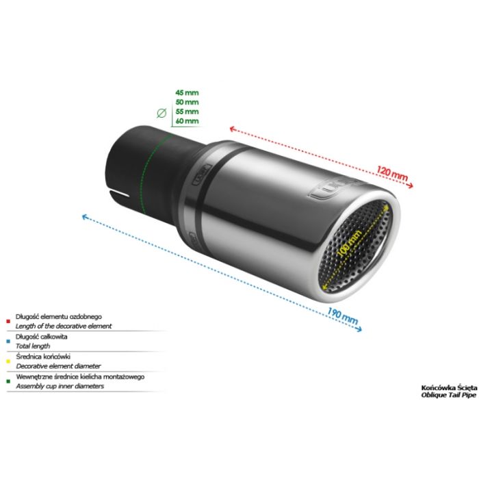 The Ulter Sport exhaust tip is a perfect solution when looking for high-quality components for the construction of your exhaust systems. Advanced technology and precise design, Ulter Sport exhaust tips ensure perfect exhaust gas flow, extracting maximum power from the engine and emphasizing the sound of engine and exhaust. Available in various configurations and styles, Ulter Sport exhaust tips enhance the appearance of your car, adding a sporty character and an sport sound. Additionally, the use of high-quality materials, such as polished stainless steel, guarantees long-term durability and corrosion resistance. Ulter Sport exhaust tips work perfectly with your car's existing exhaust system to ensure smooth exhaust flow. Whether you want to improve the performance of your sports car or simply make optical modifications, Ulter Sport exhaust tips will surely meet your expectations. Thanks to their installation, your car will not only gain an additional strong sound, but will also gain in appearance, becoming a unique and individual vehicle. If you are looking for a proven solution that combines high quality workmanship, efficiency and aesthetics, Ulter Sport exhaust tips are the perfect choice for you. Give your car even more character by choosing a product from Ulter Sport company. The end tip should be installed using a clamp or welding. The tip is made in Poland. Made of the highest quality steel.