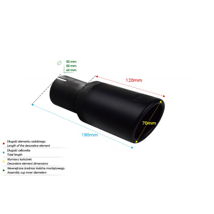 The Ulter Sport exhaust tip is a perfect solution when looking for high-quality components for the construction of your exhaust systems. Advanced technology and precise design, Ulter Sport exhaust tips ensure perfect exhaust gas flow, extracting maximum power from the engine and emphasizing the sound of engine and exhaust. Available in various configurations and styles, Ulter Sport exhaust tips enhance the appearance of your car, adding a sporty character and an sport sound. Additionally, the use of high-quality materials, such as polished stainless steel, guarantees long-term durability and corrosion resistance. Ulter Sport exhaust tips work perfectly with your car's existing exhaust system to ensure smooth exhaust flow. Whether you want to improve the performance of your sports car or simply make optical modifications, Ulter Sport exhaust tips will surely meet your expectations. Thanks to their installation, your car will not only gain an additional strong sound, but will also gain in appearance, becoming a unique and individual vehicle. If you are looking for a proven solution that combines high quality workmanship, efficiency and aesthetics, Ulter Sport exhaust tips are the perfect choice for you. Give your car even more character by choosing a product from Ulter Sport company. The end tip should be installed using a clamp or welding. The tip is made in Poland. Made of the highest quality steel.