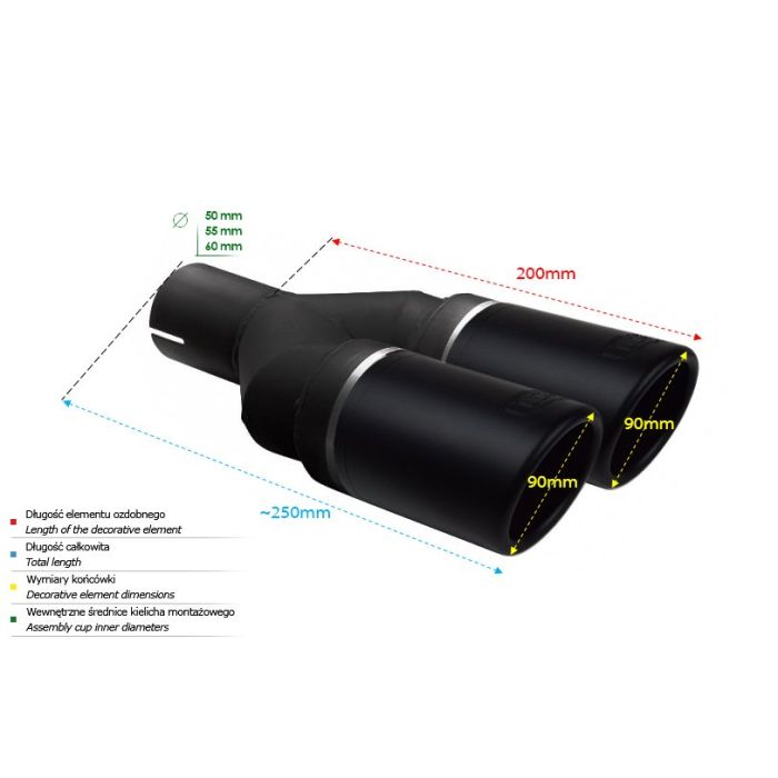 The Ulter Sport exhaust tip is a perfect solution when looking for high-quality components for the construction of your exhaust systems. Advanced technology and precise design, Ulter Sport exhaust tips ensure perfect exhaust gas flow, extracting maximum power from the engine and emphasizing the sound of engine and exhaust. Available in various configurations and styles, Ulter Sport exhaust tips enhance the appearance of your car, adding a sporty character and an sport sound. Additionally, the use of high-quality materials, such as polished stainless steel, guarantees long-term durability and corrosion resistance. Ulter Sport exhaust tips work perfectly with your car's existing exhaust system to ensure smooth exhaust flow. Whether you want to improve the performance of your sports car or simply make optical modifications, Ulter Sport exhaust tips will surely meet your expectations. Thanks to their installation, your car will not only gain an additional strong sound, but will also gain in appearance, becoming a unique and individual vehicle. If you are looking for a proven solution that combines high quality workmanship, efficiency and aesthetics, Ulter Sport exhaust tips are the perfect choice for you. Give your car even more character by choosing a product from Ulter Sport company. The end tip should be installed using a clamp or welding. The tip is made in Poland. Made of the highest quality steel.