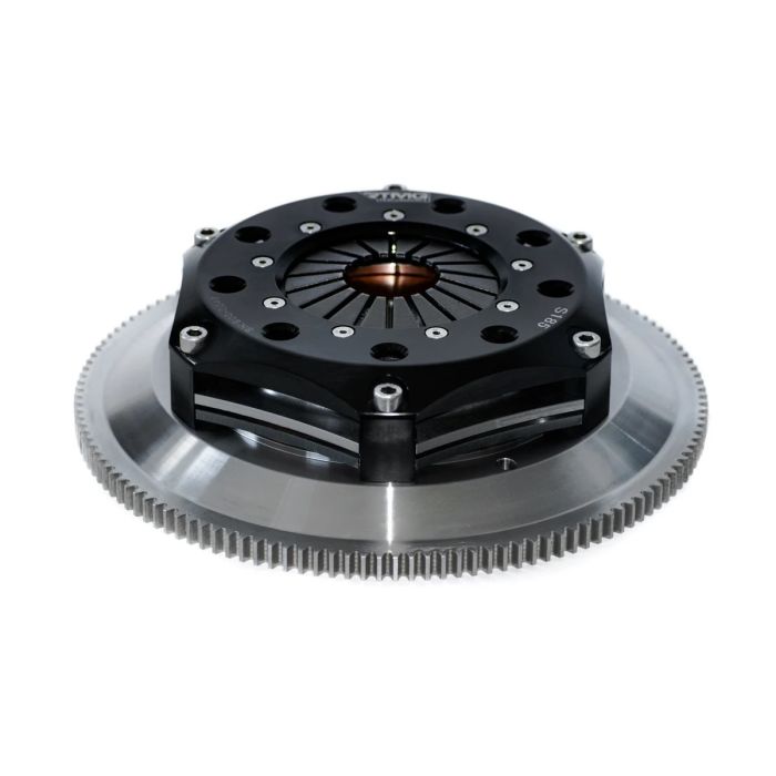 Our Twin Disc Clutch has been designed by our in-house engineers, and tested extensively in drag, drift and daily cars, in order to achieve great pedal feel, high torque capacity and reliability. The friction materials are ceramic metallic or organic and it's made in Germany, the outer diameter is 185 mm to 200 mm.