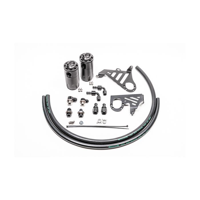 Radium Engineering catch cans feature large 10AN ORB ports, a 4AN ORB drain port, 2-step oil separation baffling, and an O-ring sealed dipstick. These kits mount using factory holes and integrate perfectly with the surrounding components. These two oil catch cans (PCV and CCV) function completely independent of each other and are sold individually or together. They do NOT vent to atmosphere (VTA), thus are emissions and track legal. Closed loop systems remove the oil and sludge from the PCV gasses before it is routed to the engine to be burned. A closed loop system also promotes negative crankcase pressure for optimal performance. Furthermore, closed systems prevent unwanted oil vapors from entering the cabin. The dipsticks built into the catch cans allow easy inspection of accumulated fluid. No cutting, drilling or permanent modification to the vehicle is required.