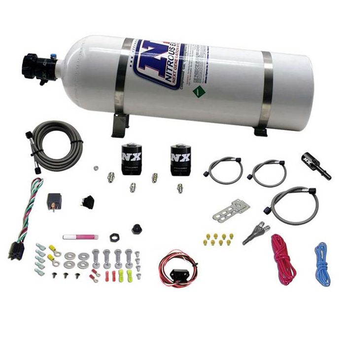 The NX Stage 1 EFI Fly By Wire nitrous system is the top of the line EFI power booster on the market. From the billet aluminum and carbon fiber solenoids, to our patented Shark nozzle, this system screams nothing but quality.