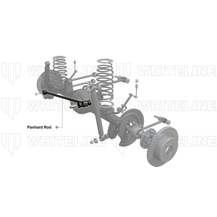 The panhard rod's function is to control the lateral movement of the axle. When modifying the ride height of your vehicle it is necessary to use an adjustable panhard rod to correct axle centre. Whiteline's Adjustable Panhard Rod is made from heavy duty DOM steel tube with Forged Ends for strength, and features our GIIRO bushings with grease free technology for quiet, maintenance-free operation.
