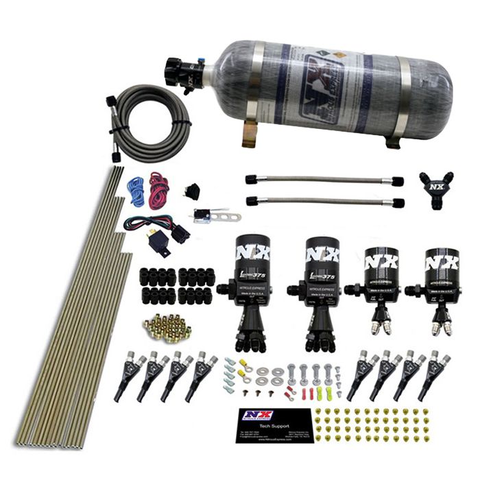8 Cylinder Shark Direct Port Lightning 375 Solenoids 200-2100Hp Jets with 12Lb Carbon Bottle Nitrous Express NX 90506-12