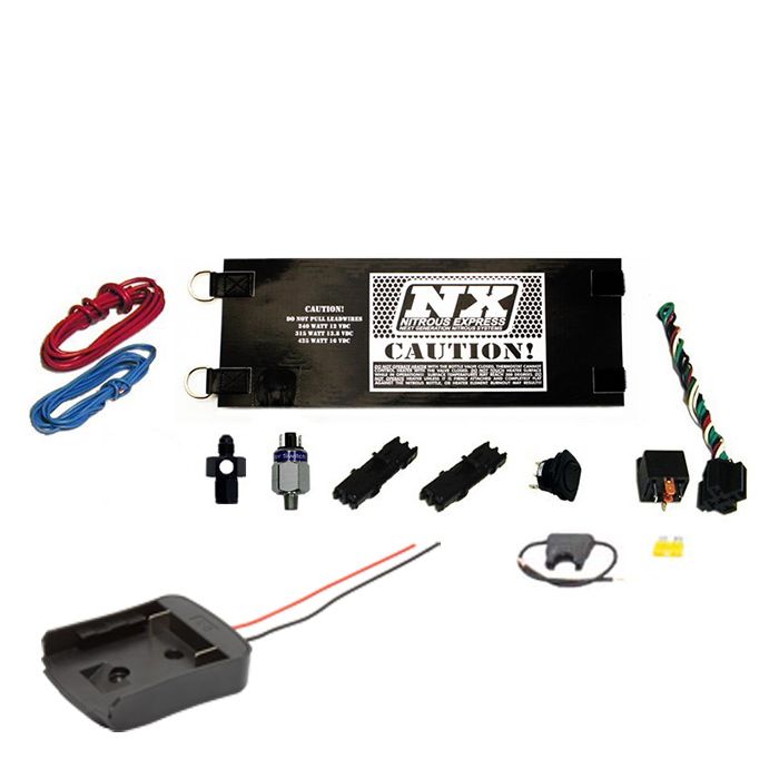 NX fully automatic bottle heaters are pressure controlled so you are always at the proper nitrous pressure. Heater element has surface temperatures above 300 degrees. This element can take a bottle from ice cold to operating pressure in minutes. Includes heater element, automatic pressure switch, HD 40 amp relay and harness and a 4AN manifold.
