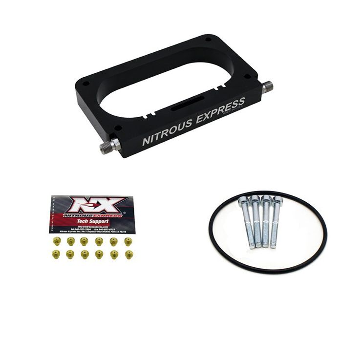 The Nitrous Express 4 Valve Plate Conversion features a billet nitrous plate that fits between the throttle body and intake making installation quick, simple, and attractive.