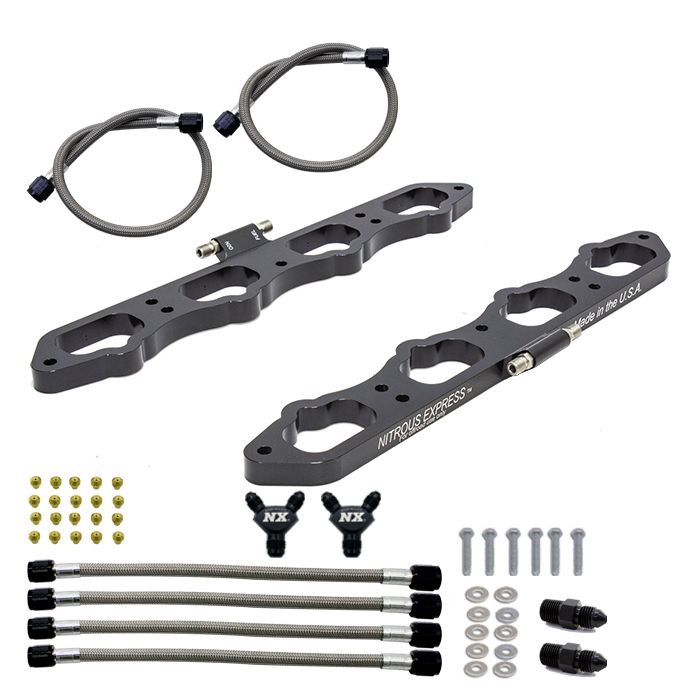 This setup is capable of spraying anywhere from 100-300 horsepower. Direct port plates offer a huge benefit compared to a single nozzle or a plate giving you get the best distribution possible, feeding an equal amount of nitrous and fuel to each cylinder.