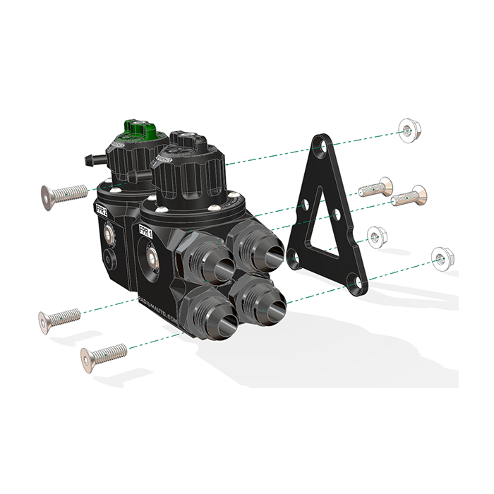 This port should be plumbed directly to the port injection fuel rail(s). Plug the opposing end of the fuel rail(s). NOTE: If the engine does not have port injection, this port can be plugged with no affect to FPR1. For FPR1 to work efficiently, spin the FPR2 knob fully counterclockwise.