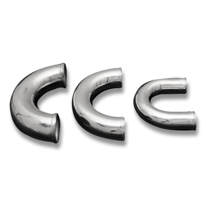 180 degrees alloy elbow with a diameter 57mm, made of pipe a length 30cm, with swaged ends, is best suited for the construction of the intakesystem. Pipe wall thickness of 2mm makes the elbow light and also provides high pressure resistance at the inlet. Elbow may as well be welded. Not only the inlet weight is reduced but also has a neat appearance – high polished.